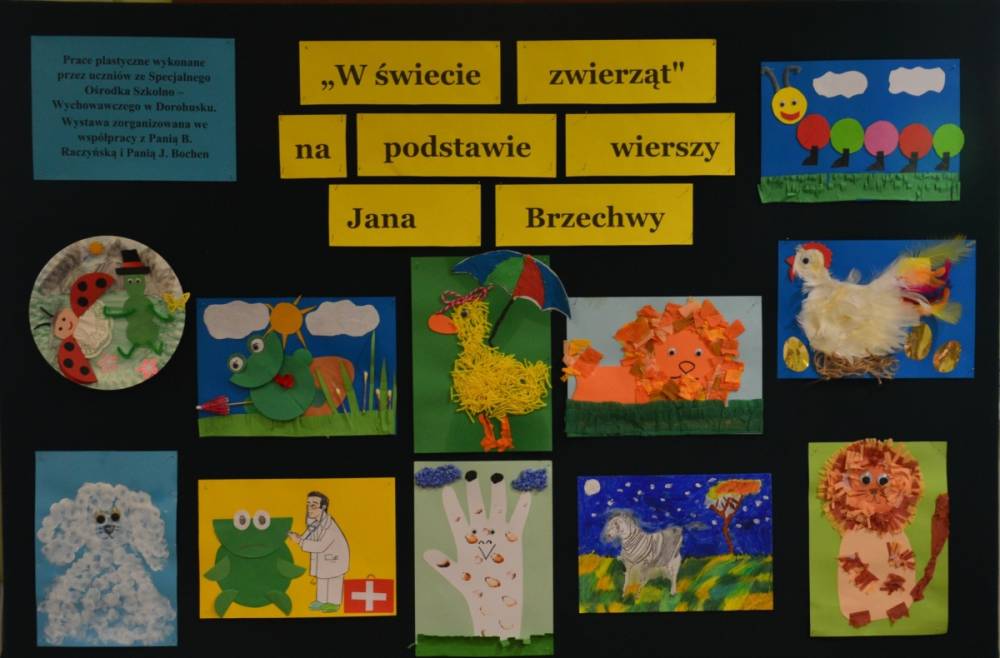 Wystawa „W świecie zwierząt” na podstawie wierszy Jana Brzechwy.
