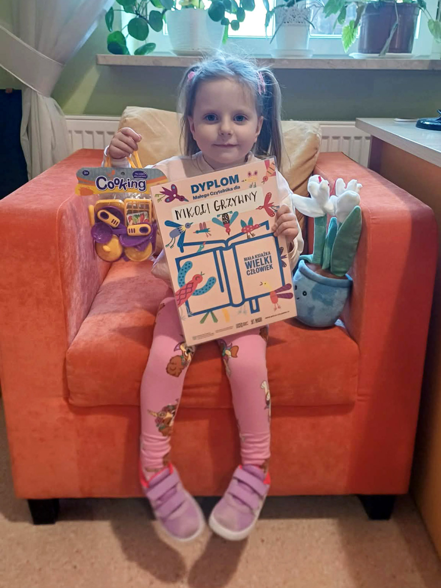 10 naklejek na karcie małego czytelnika daje dziecku przepustkę do odebrania drugiej książki, a za swój czytelniczy entuzjazm w dowód uznania otrzymuje dyplom.