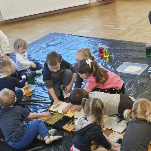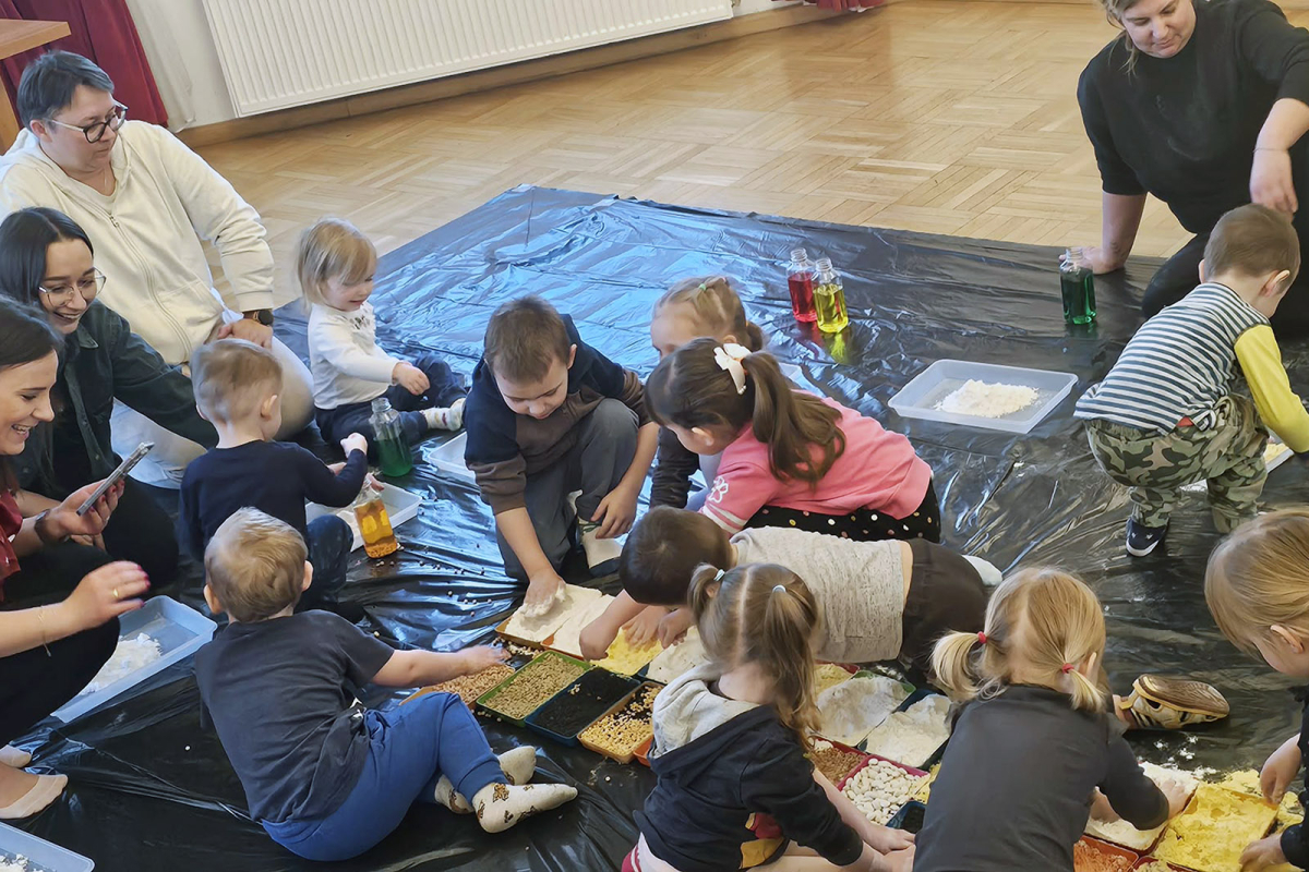 Spotkanie pełne kolorów, zapachów i faktur dostarczyło wszystkim uczestnikom mnóstwo radości. Każde dziecko mogło działać w swoim tempie, zgodnie z własną ciekawością i pomysłowością.