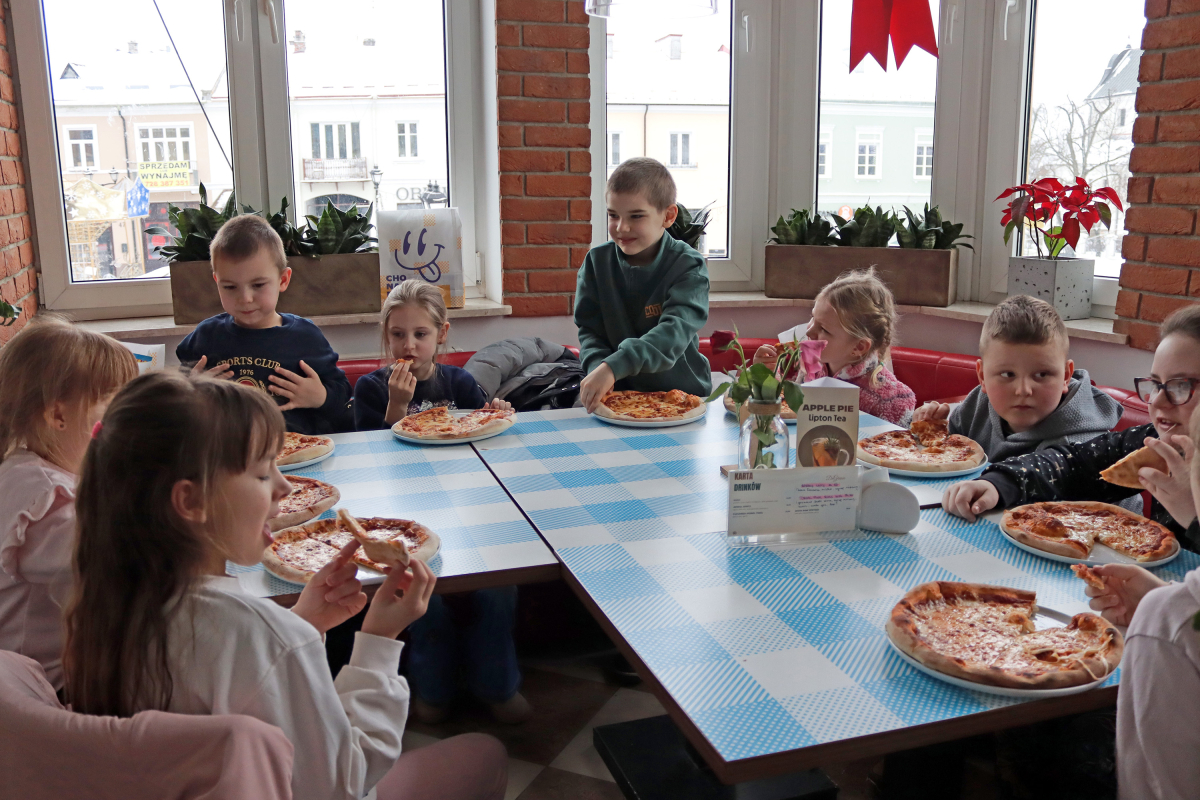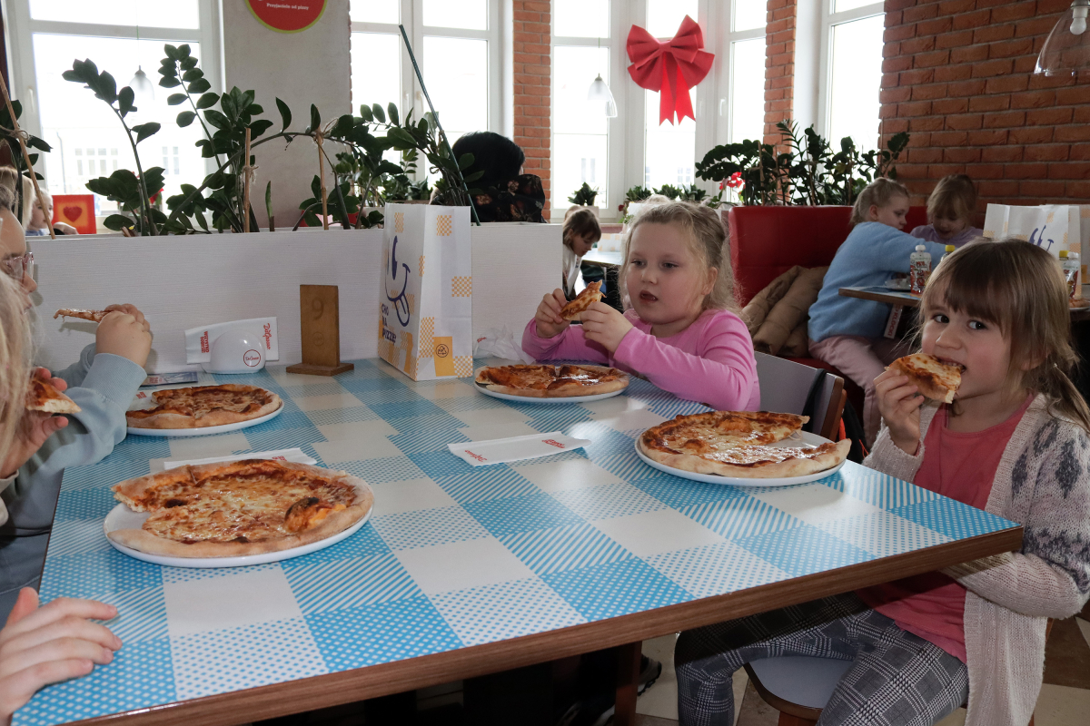 W programie znalazł się również wyjazd do Chełm, podczas którego dzieci spędziły czas w sali zabaw, obejrzały film w Kinie ZORZA, a następnie wspólnie udały się na pizzę, ucząc się przy tym zasad kulturalnego zachowania przy stole.