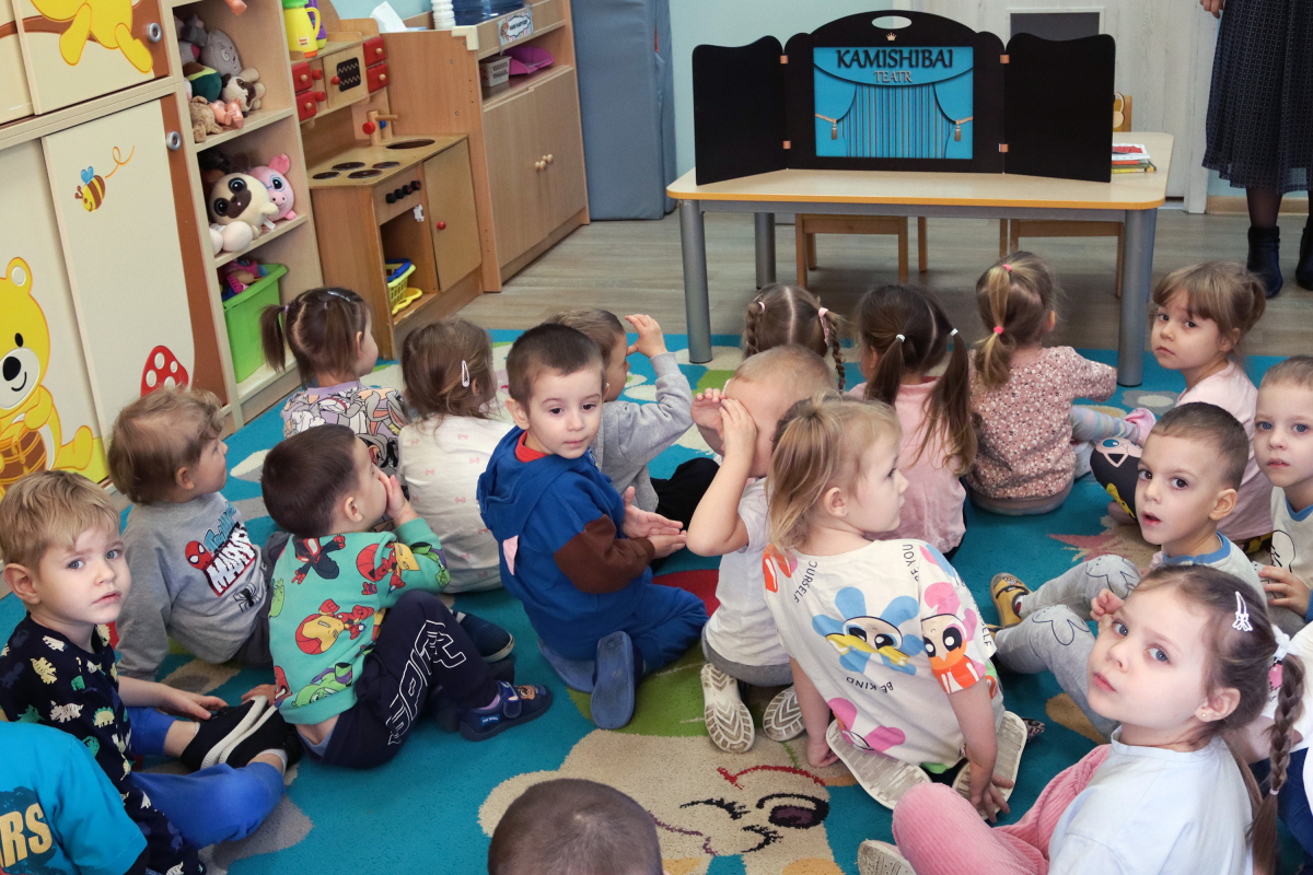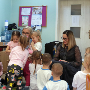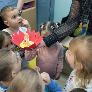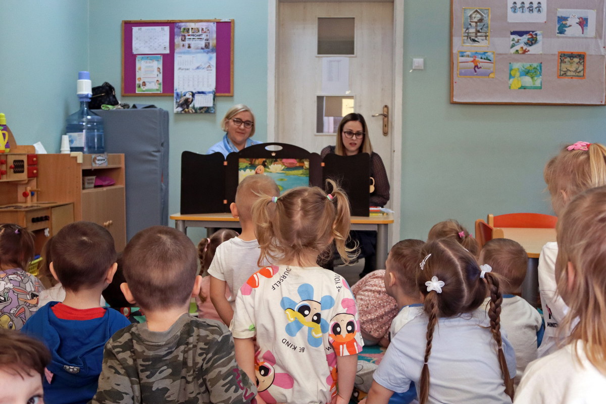 Na inaugurację odwiedziliśmy przedszkolaki z Zespołu Szkolno-Przedszkolnego w Dorohusku. Dzieci z dużym zaciekawieniem obejrzały i wysłuchały opowieści przedstawionej w formie teatrzyku Kamishibai – wyjątkowej techniki łączącej obraz i słowo, która pobudza wyobraźnię oraz zachęca do aktywnego uczestnictwa.