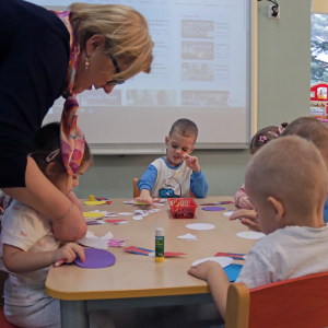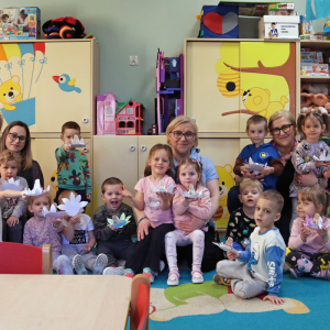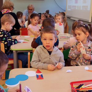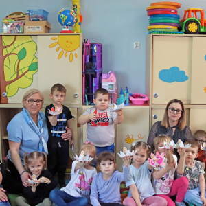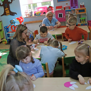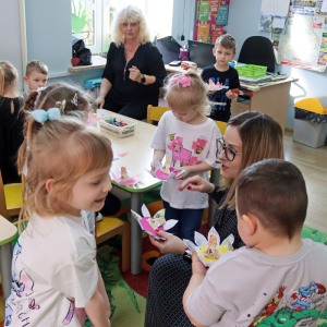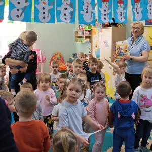 Po wspólnym czytaniu przyszedł czas na rozmowę o książce oraz pracę plastyczną inspirowaną poznaną historią. Spotkanie przebiegło w ciepłej, pełnej radości atmosferze, a entuzjazm dzieci był dla nas najlepszym dowodem na to, że książka może stać się początkiem wspaniałej przygody.